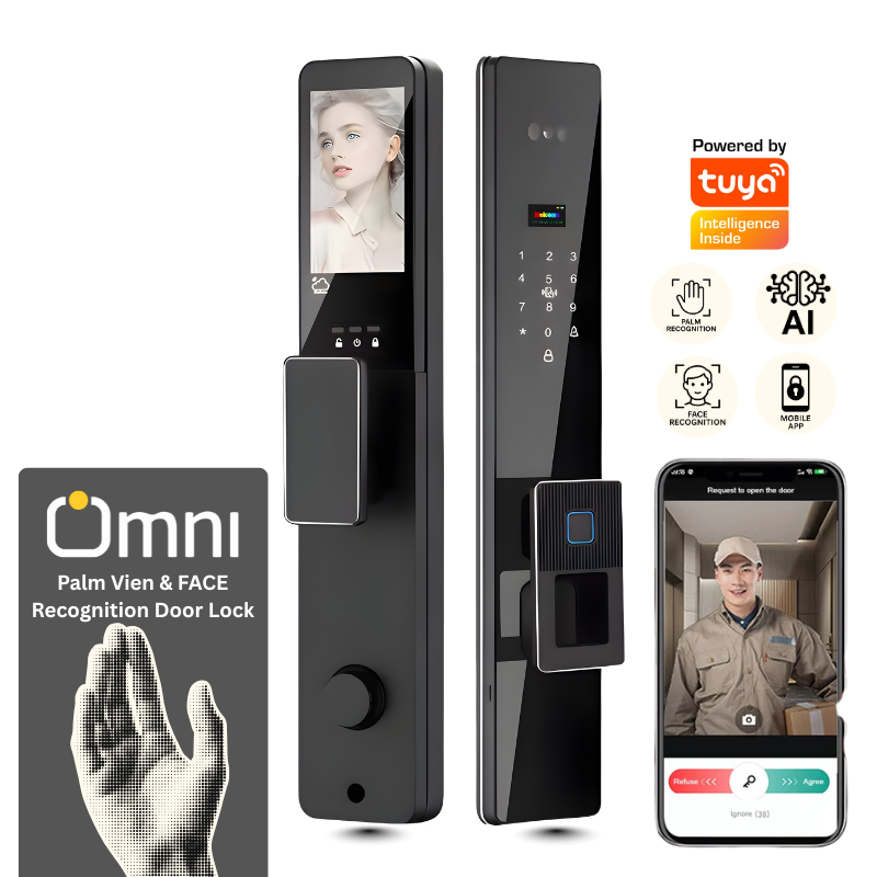 Experience next-generation security with the Omni Smart PFS-25 palm Recognition door lock. Featuring 7 unlocking methods including Palm Vein, 3D Face, Fingerprint, Passcode, Card, App, and Mechanical Key. Designed for Pakistani homes, compatible with Tuya Smart Life, and built to withstand local power conditions.